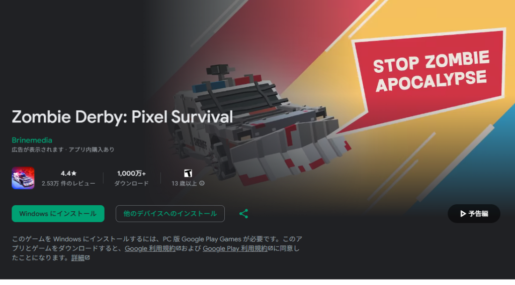 Zombie Derby Pixel Survival (Xbox版)についてゲームの攻略関係の情報を調べていて、Android版が無料というのを見つけた。