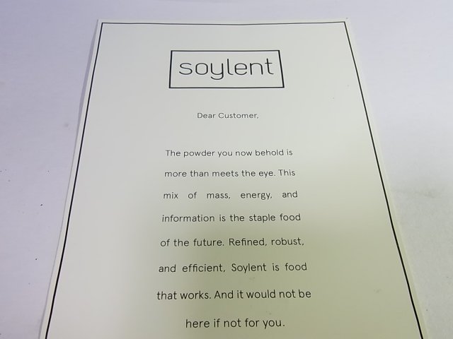 (Soylentというのは野菜や肉などの食事の代わりになる粉末の完全食品である。)