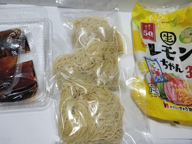 冷やし中華を作って食べた。 (シマダヤもみ打ち生冷やし中華, スガキヤ生冷やしラーメン,サンサスきねうち冷やし中華麺)