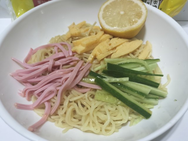 生麺のコシがあり、美味しい。タレのレモン風味もさっぱりしていて甘酸っぱく美味しかった。