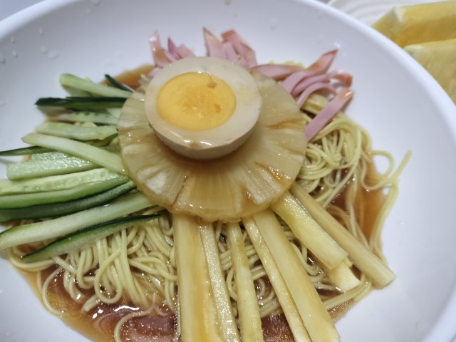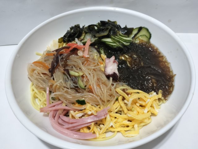 酢で漬けた具材は、冷やし中華に合いそうだ。