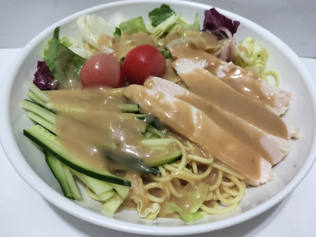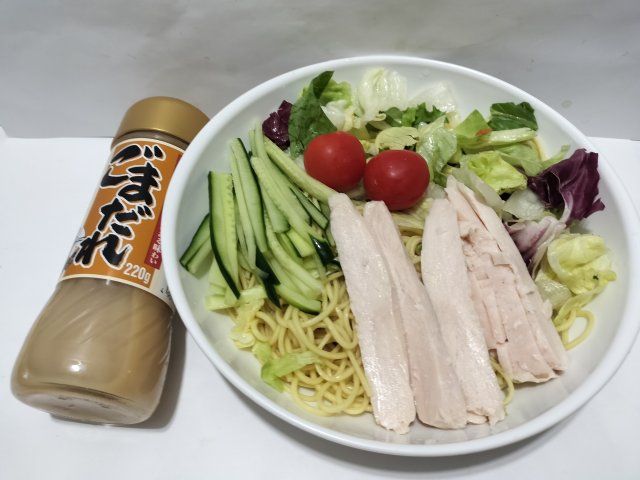 この例だと蒸したキャベツを使ってゴマだれで食べる冷やし中華だ。