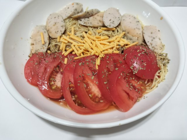 トマトジュースを使ったスープで、トマトをトッピングしたトマト冷やし中華を作ってみた。