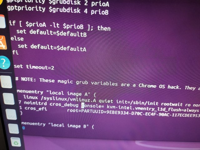 grubの設定を弄るとChromeOS Flexを開発者モードにすることができるという情報があったので、これも試してみたがダメだった。