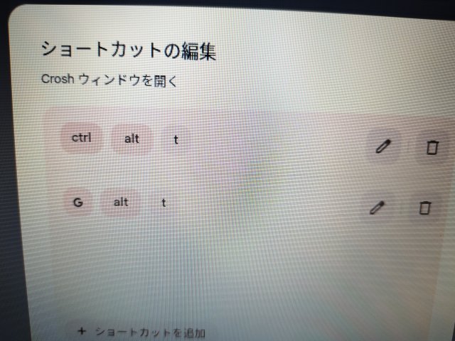 だが、croshからshell起動ができなかった。Linuxのshellの起動ができない。