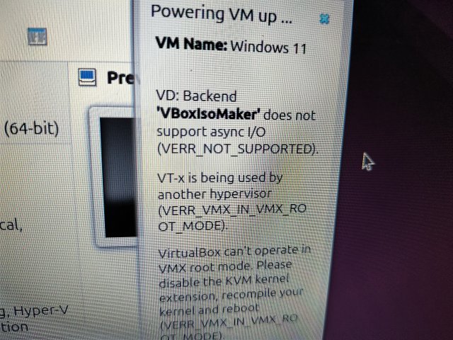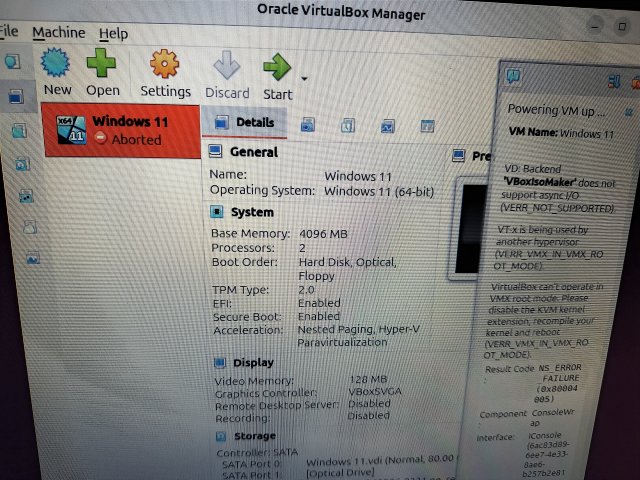 古いMacbook Air (2015)のUbuntuにVirtualBoxをインストールして仮想環境でWindows11を動かそうとしたのだが、うまく動かない。