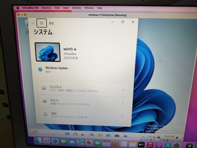 macOS版のVirtualBox 7.2.2をmacOS Montereyにインストールして、同様にWindows 11(Enterprise評価版)を仮想環境に入れて動かしてみた。