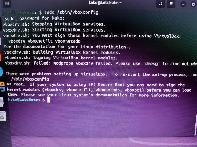 だが、結局エラーは解消されずvboxdrvというのは動いていない。