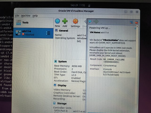 レッツノートCF-NX4のUbuntuにVirtualBoxをインストールして仮想環境でWindows11を動かそうとしたのだが、うまく動かない。