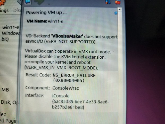 VBoxisoMakerのエラーで、KVM kernel extensionが動作しているとVMX root modeのせいでVirtualboxの動作に悪さをするらしい??