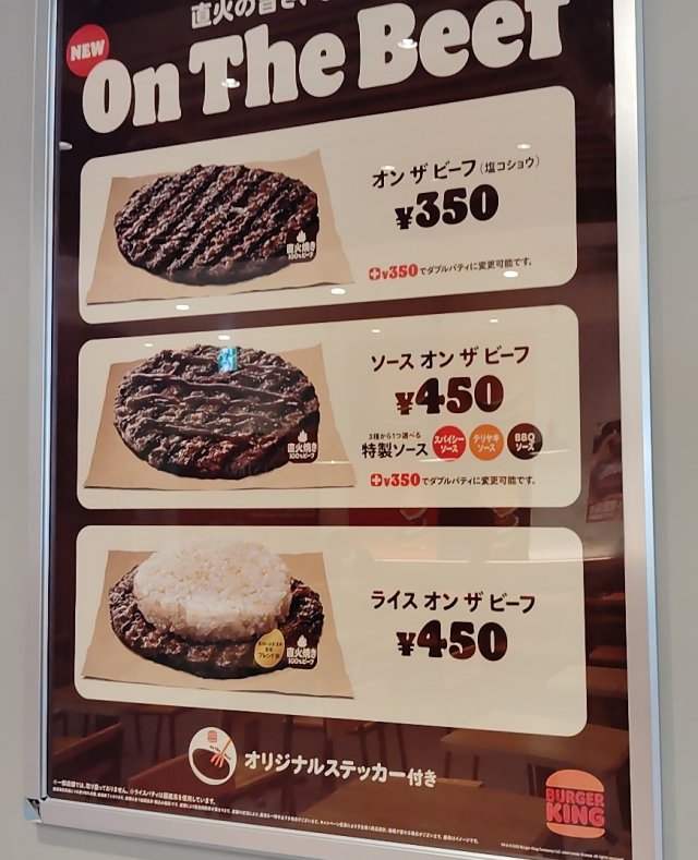 ハンバーグのみのオンザビーフを2つテイクアウト注文した。