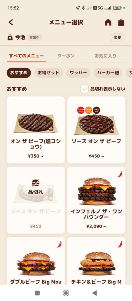 ライス オン ザ ビーフを注文しようと思っていたのだが、品切れだった。