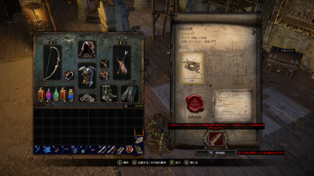 (あと、Stashに入れられない依頼書が1つあり、メンバー不足で依頼を受けられないという状態になっている。インベントリーを1マス分だけ圧迫しているので、ちょっと困る。)