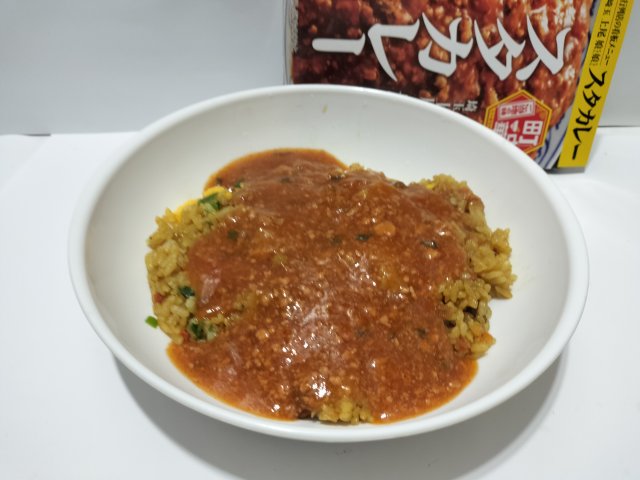カレー炒飯にかけてみた。スタカレーカレー炒飯だ。