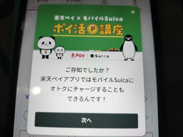 楽天PayアプリにSuicaの機能が追加されていることに最近になって気がついた。(楽天Payアプリの画面の上に小さいアイコンが表示されている。)