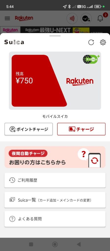 楽天Payアプリを起動していなくてもモバイルSuicaは機能するので、普通におサイフケータイとして使えるようだ。