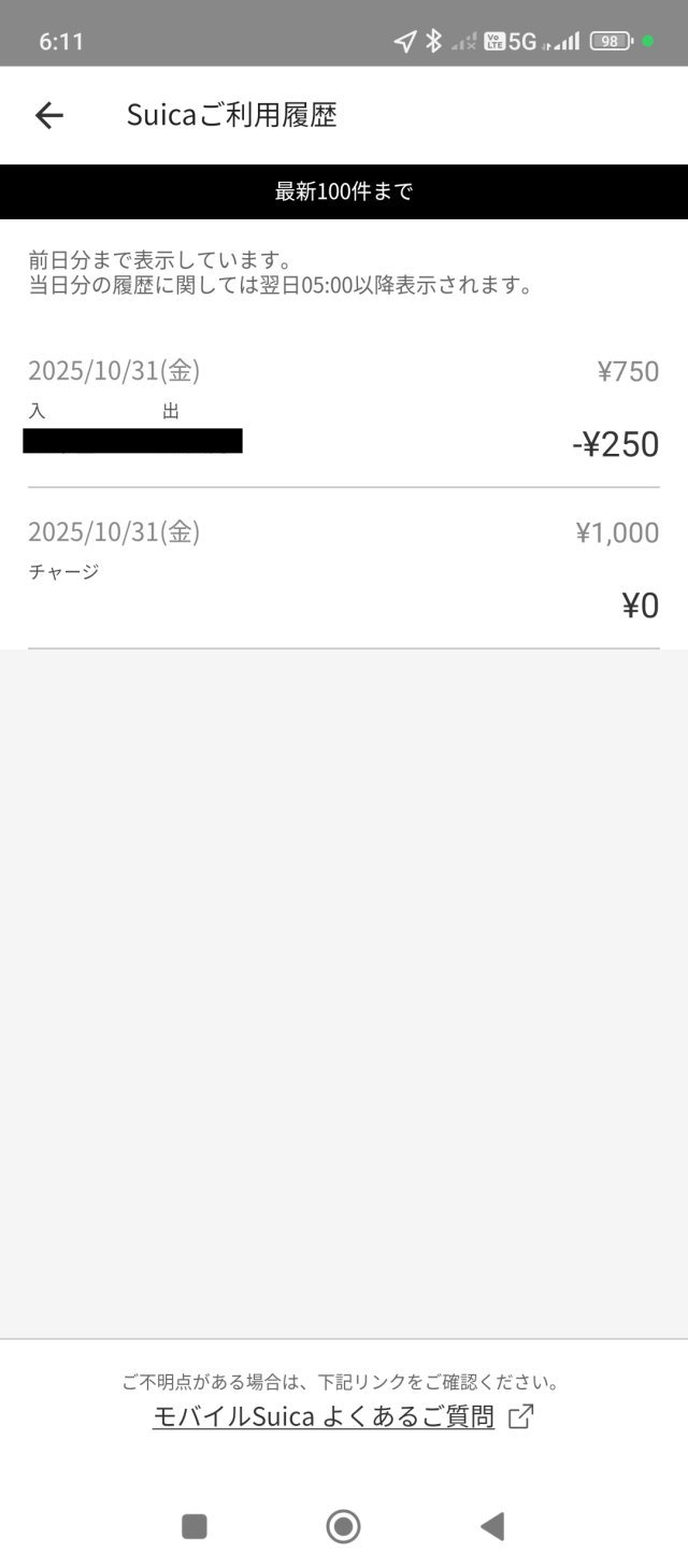 反面、アプリを起動後してチャージをしようとしたとき、ひどくSuica管理画面が開くまでに時間が掛かったりする。2~3分待っても開かなかったりした。