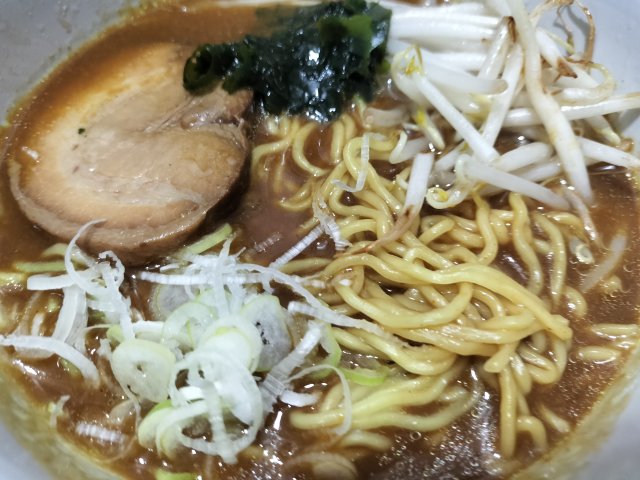 具材に、追加でネギとモヤシとワカメをトッピングした。