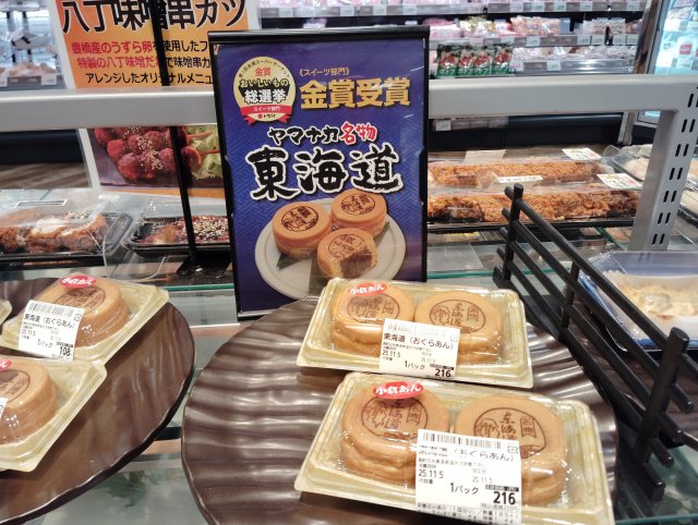 あと、冷凍食品ではないが、ヤマナカ系スーパーなので、大判焼きの東海道が売っている。