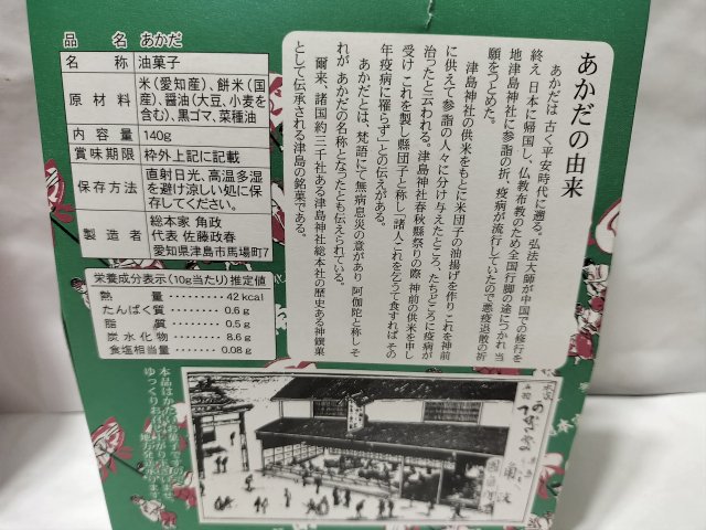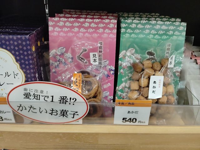 日本一堅いお菓子と言われている津島の名産のお菓子が売っていたので、購入した。