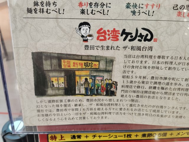 台湾ケンさん(イオンタウン千種店)に行ってみた (台湾ラーメンを食べた) 【なごやめし】 コメントを残す 台湾ケンさん(イオンタウン千種店)に行ってみた。 極み台湾を注文した。 にんにくを煮たものがごろごろ入っている。見た目通り、かなり激辛だ。 おろしニンニクと刻みニンニクが自由に足せるので、ちょっとずつ足してみたのだが、かなりニンニクが強くなってしまった。