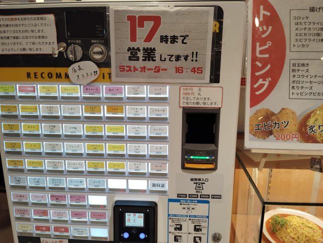 エビと野菜のあんかけスパ「コモ」を注文した。(券売機で券を購入)