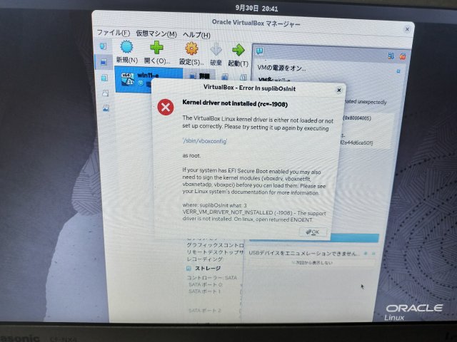 レッツノートにOracle LinixをインストールしてVirtualBoxを動かそうとしたのだが、うまくいかない。