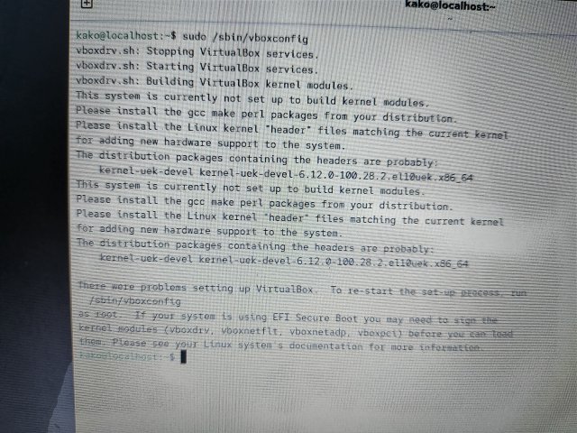 root権限で、/sbin/vboxconfigを実行するように表示されているので試したのだが、うまくいかなかった。