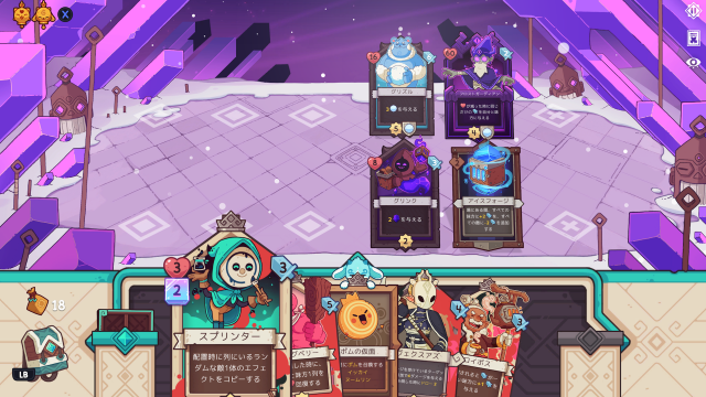 最初は なかなか先までいけないのだが、周回して何度もバトルして条件を満たすと使えるカードが増えて先に進みやすくなってくる。