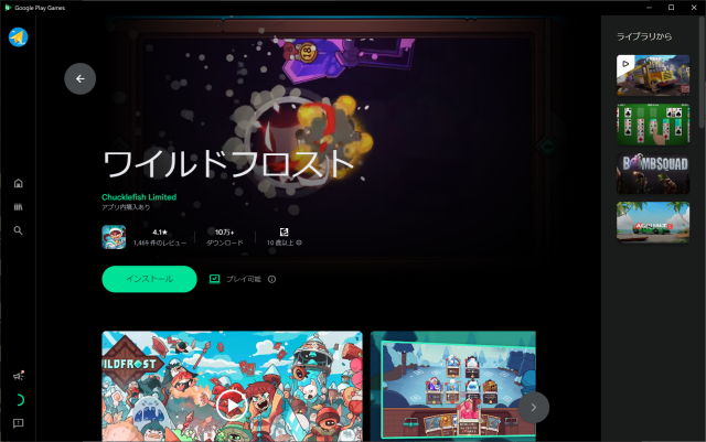 Wildfrostも同様にインストールしてみたが、無料デモ版で続きをプレイするには購入が必要だった。
