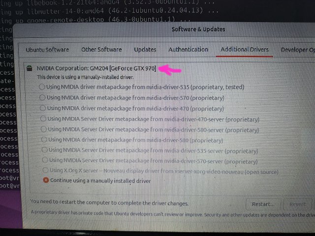 Software Updatesの設定画面で、Additional DrivesでGTX970のドライバを入れた。