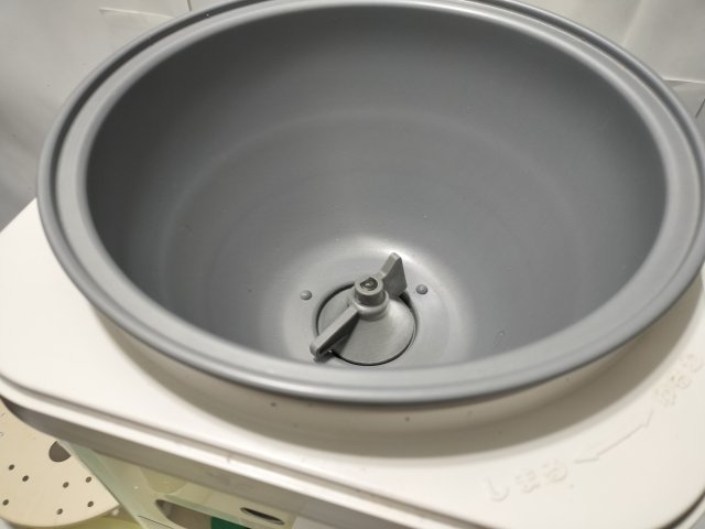 今回はもち米は炊飯器で炊いて、それをこねるのをこの餅つき機でやってみた。