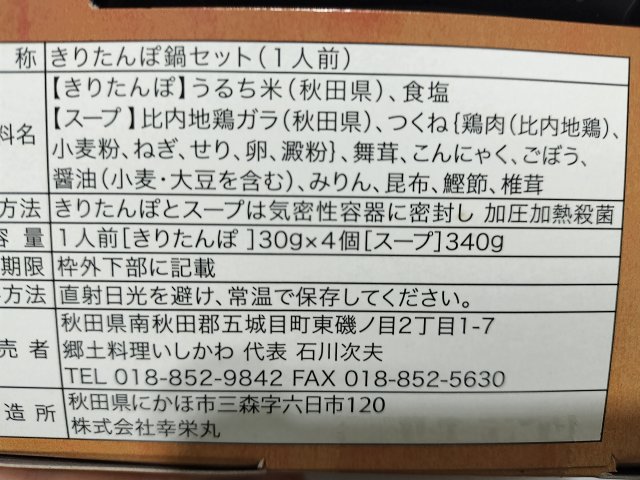 お手軽に食べられるきりたんぽ鍋で、きりたんぽが小さくてボリューム感がちょっと物足りないが、美味しかった。
