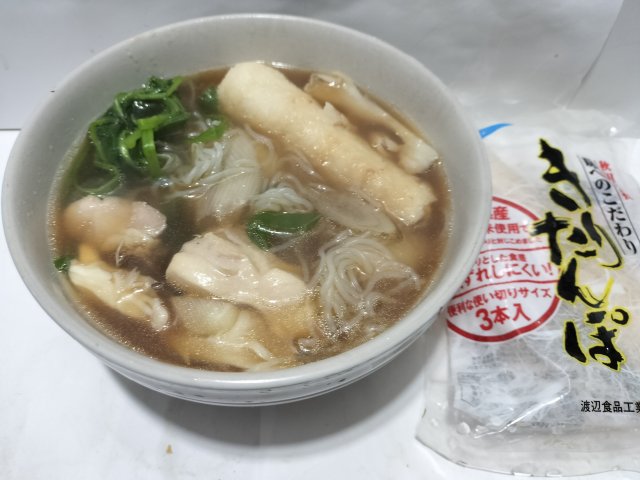 具材は、鶏肉、しららき、ゴボウ、セリ、ネギ、舞茸を入れた。