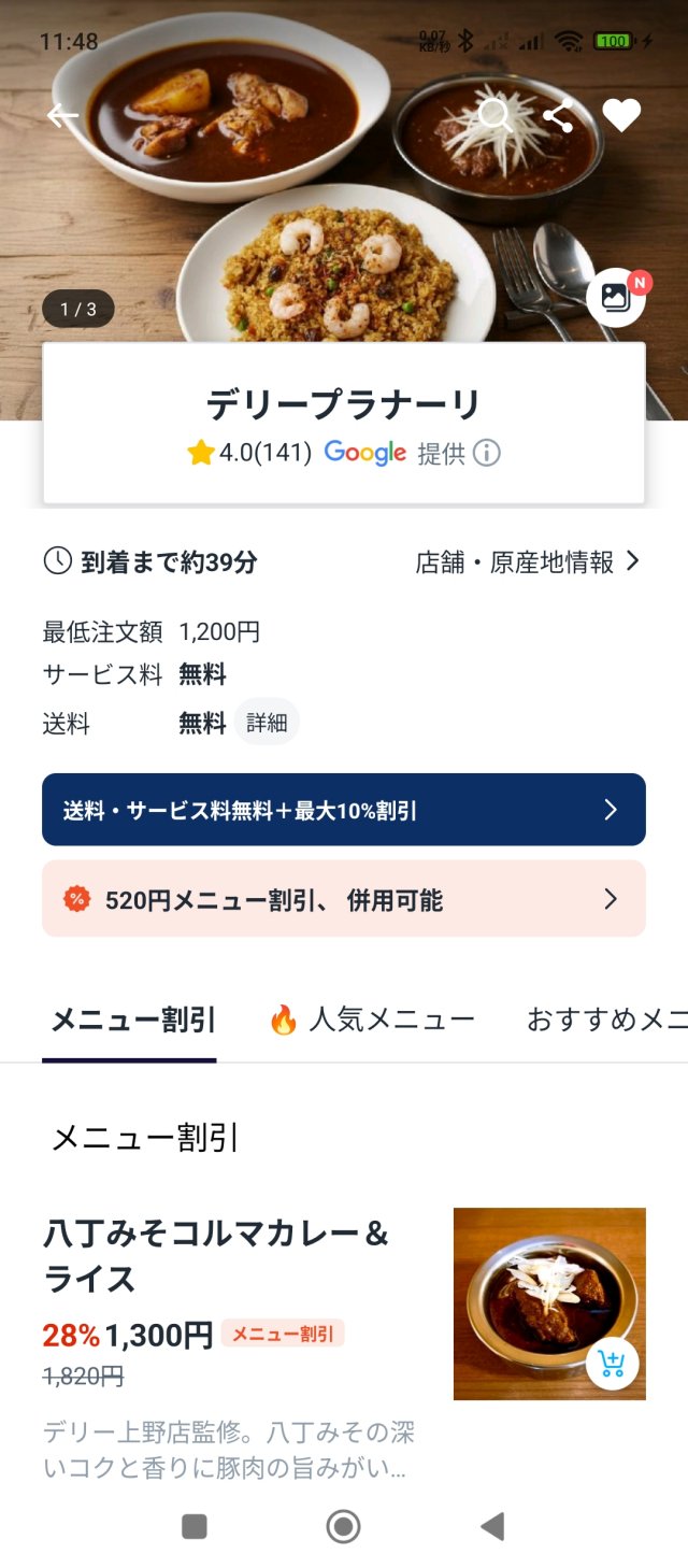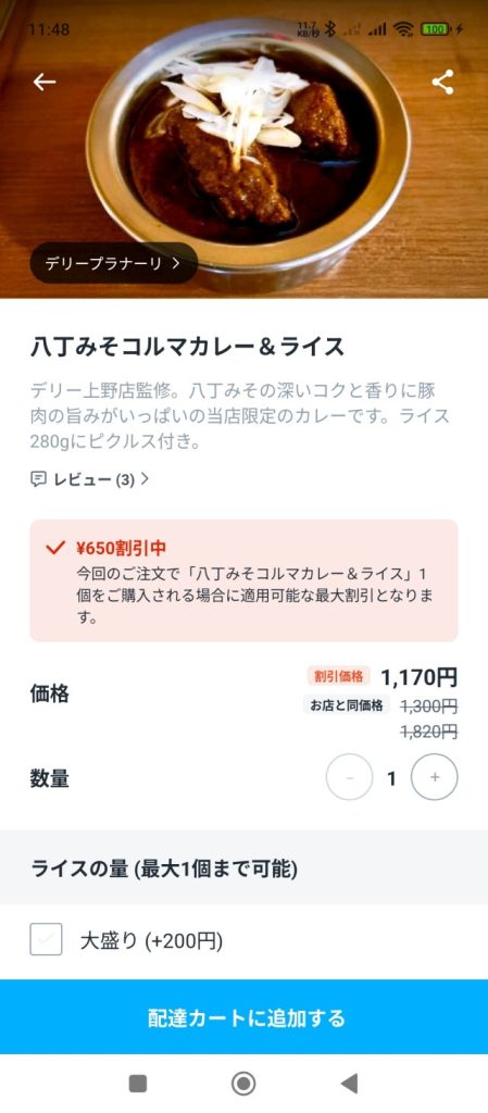 お店と同じ値段で送料サービス料0円で配達されるようだが、どこから配達の人件費が出ているのか謎だ。