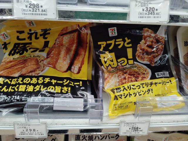 去年の発売当初は名古屋では売っているのを見かけなかったが、しばらくしてチャーシューや「アブラと肉」が売っているのを見かけた。