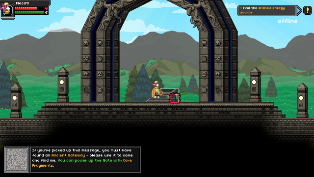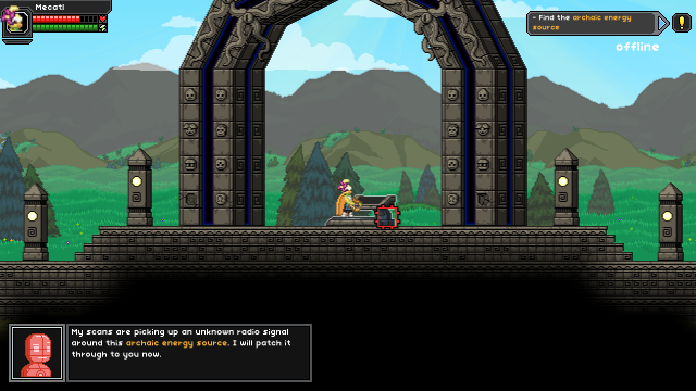 上陸地点から画面の右方向に行くと、なにやら遺跡があり、目的のエネルギーが手に入りそうな感じだ。