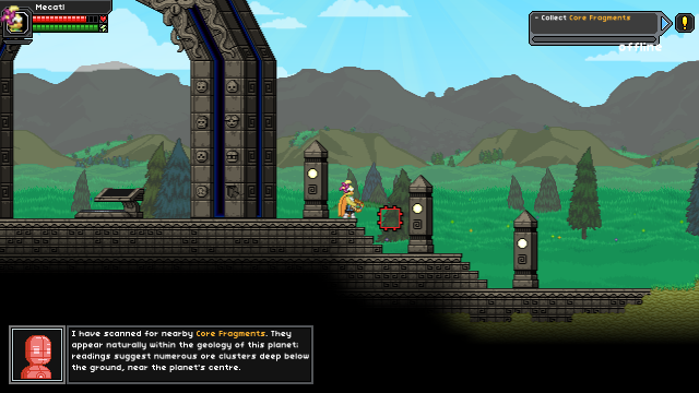 近くにあるCore Fragmentsというのを探して集めないといけないらしい。