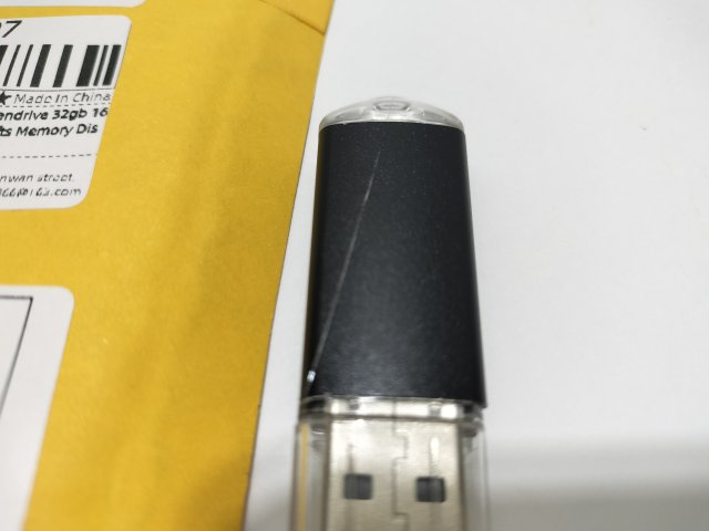 AliexpressでUSBメモリを買ったのだが、ナイフのようなもので切りつけられたものが届いた。