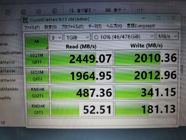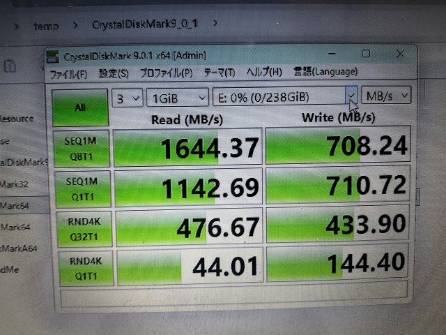 交換した1TBのSSDは、ちょっとだけ速度が劣る。