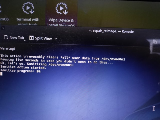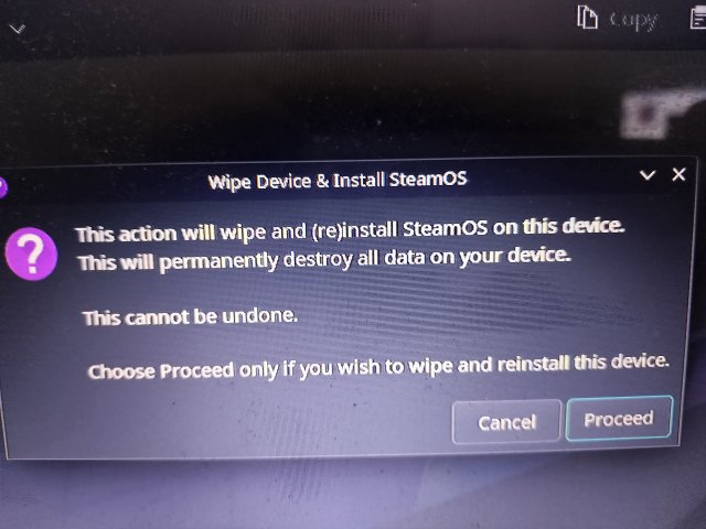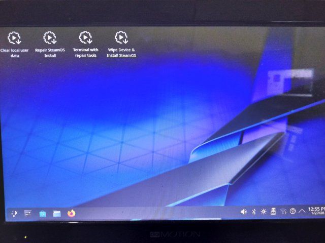 起動すると、デスクトップの左上に4つのアイコンがある。4つめの「Wipe Device & Install SteamOS」というのを起動する。