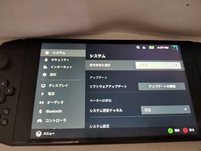 AYANEO 2021に取り付けたSSDから普通にSteamOSが起動した。起動が高速で、電源を入れて20秒弱くらいで起動した。