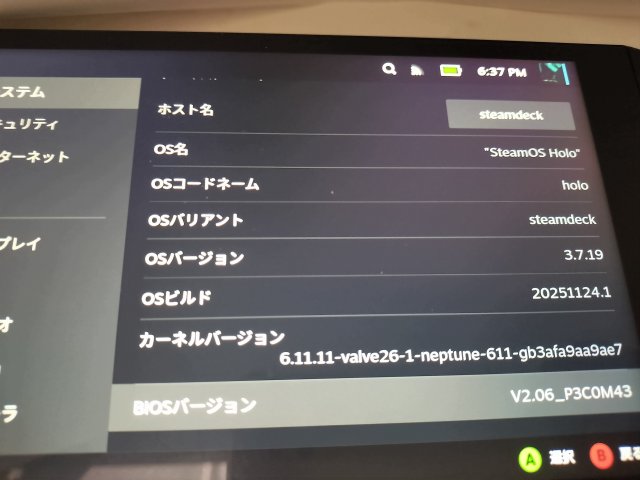今回入れたSteamOSのバージョンは3.7.19だ。