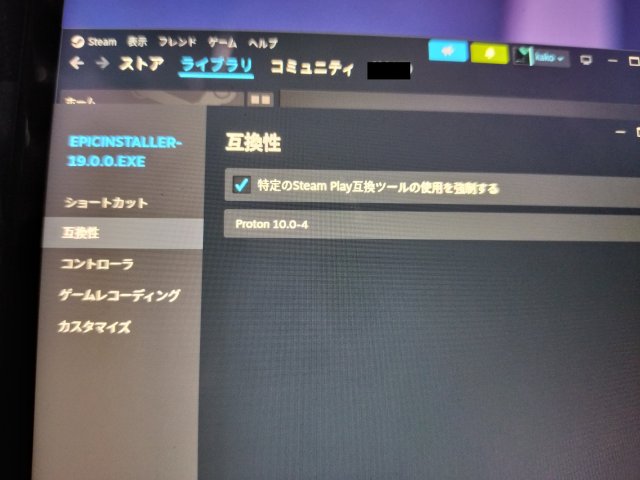 (3) SteamOSでProtonを使う設定でEpicInstallerを動かす