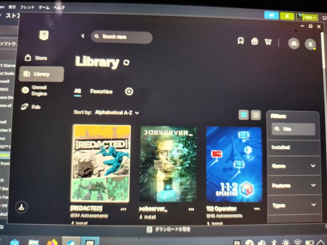 EpicGames Launcherはゲームパッドで操作ができないので、SteamOSからEpicGamesLaucherを起動したあとはタッチパネルで操作をしないといけないのだが、AYANEO上で操作する場合、画面が物理的に小さいので指で小さい場所をタッチ/タップしないといけないのでちょっと操作にしくいのが難点だ。