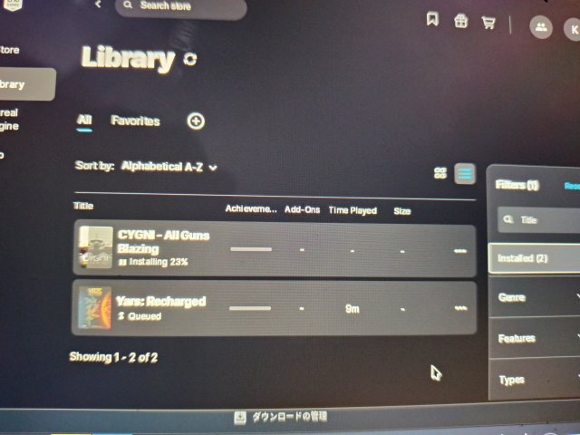 EpicGamesのライブラリのゲームはEpicGamesLauncherから起動するほうが、動作しやすいようだ。ワンクッション手間が掛かるのでちょっと面倒だが、しかたがない。