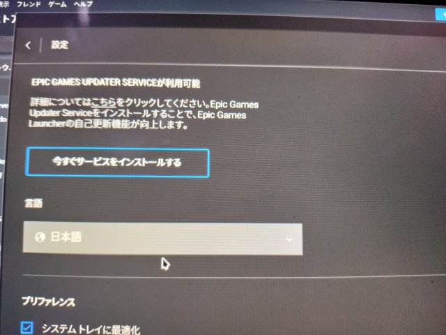 あと、設定でEpicGames Updater Serviceもインストールしておく。
