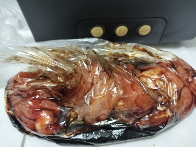 袋にタレと肉を入れてあらかじめ冷蔵庫で一晩おいて、味を付けてから加熱した。