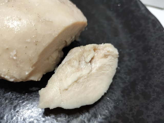 鶏ハムっぽい感じのしっとりとしたサラダチキンができた。