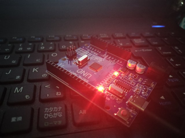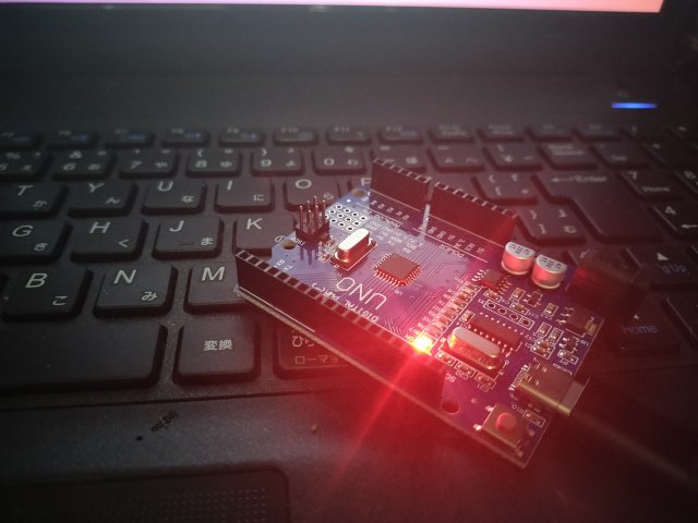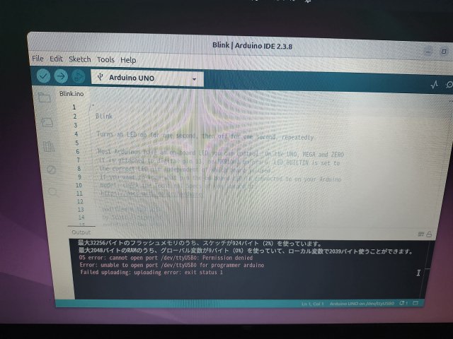 無事、Arduino UNOにblinkのスケッチの書き込みができて、LEDが点滅した。